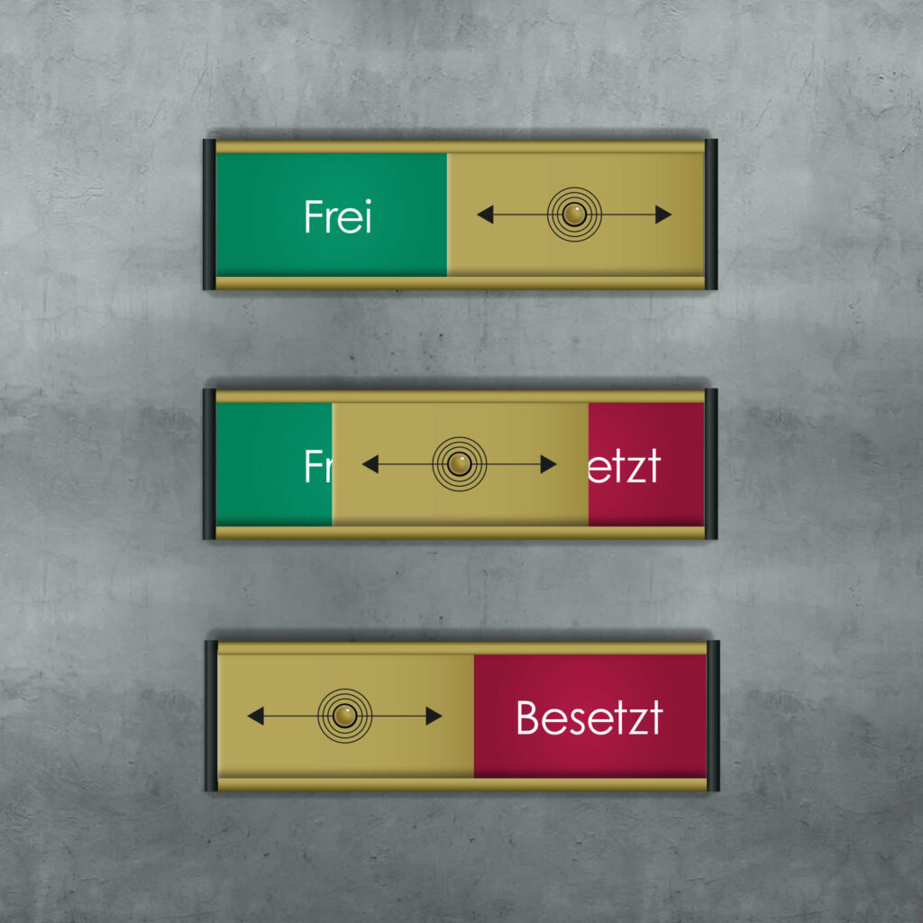 Frei-besetzt Schild Gold 100 x 31 mm lässt sich einfach und bequem außerhalb eines Zimmers, Büros oder einer Toilette anbringen, um für jeden deutlich zu machen, ob der Raum oder die Person frei ist oder nicht.