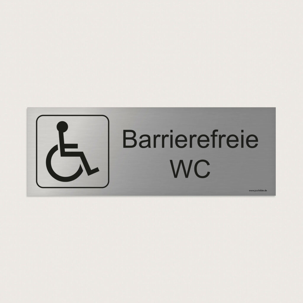 Ein Hinweisschild mit Symbol und dem Text „Barrierefreie WC“, das zur eindeutigen Kennzeichnung behindertengerechter Sanitäranlagen dient – erleichtert die Orientierung und weist klar auf den vorgesehenen Raum hin.