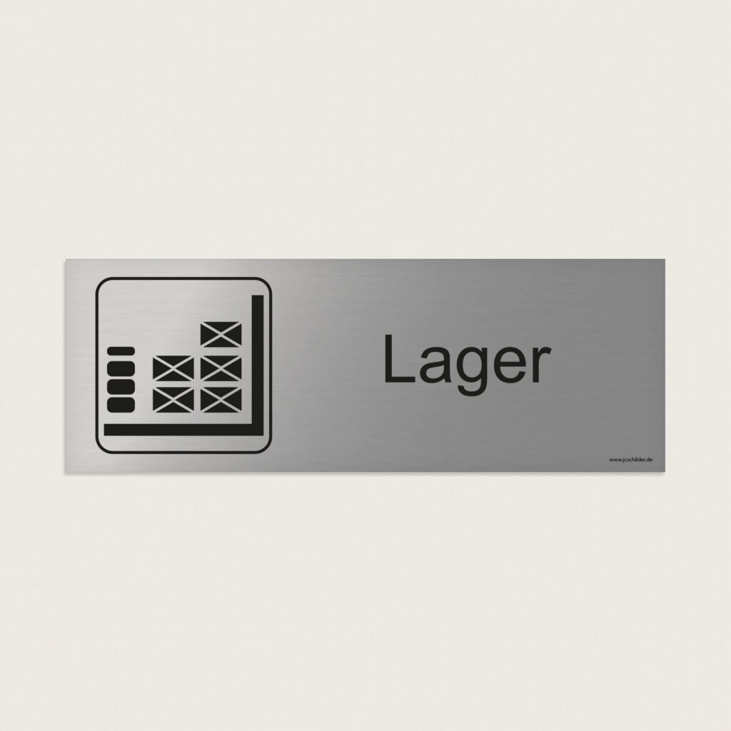 Ein Hinweisschild mit Symbol und dem Text ‚Lager‘, das zur Kennzeichnung eines Lagerraums oder einer Lagerfläche angebracht wird.