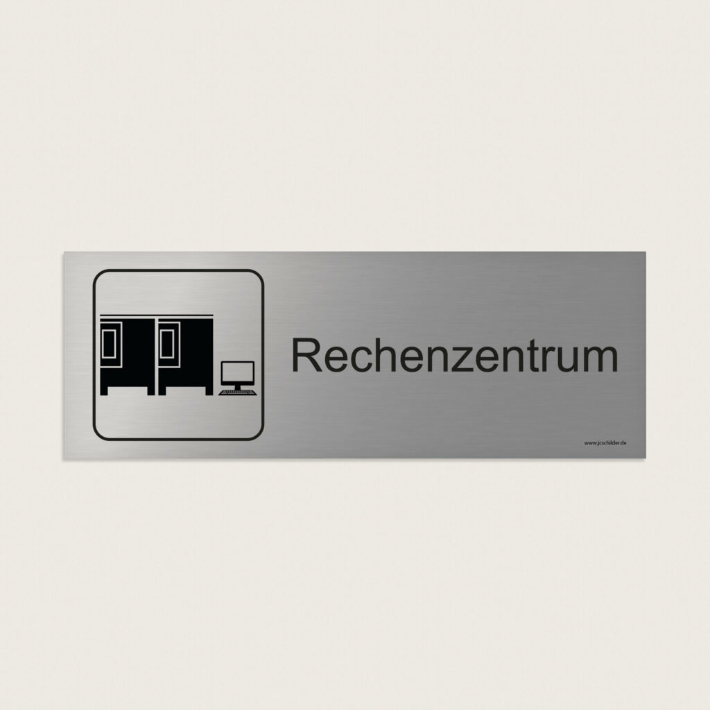 Ein Hinweisschild mit Symbol und Text Rechenzentrum, um es den Personen, die dort arbeiten sollen, zu erleichtern, den Weg dorthin zu finden.