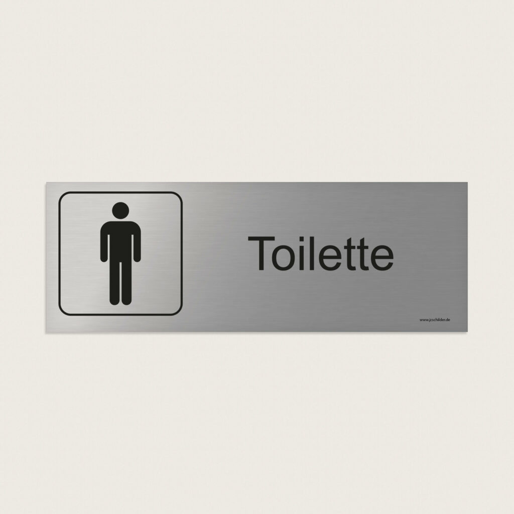 Ein Hinweisschild mit Symbol und dem Text „Toilette Herren“, das zur eindeutigen Kennzeichnung sanitärer Anlagen für Männer dient – erleichtert die Orientierung und weist klar auf den vorgesehenen Bereich hin.