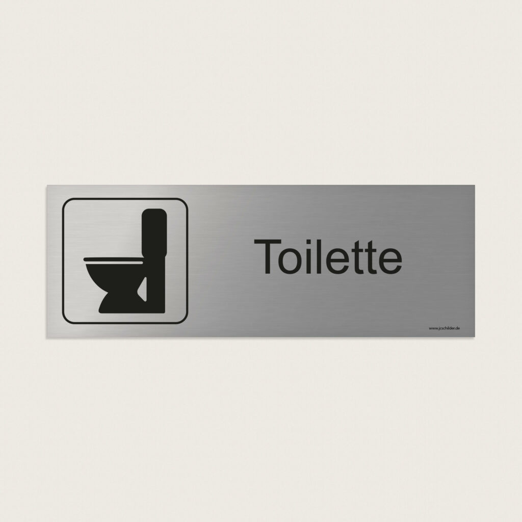 Ein Hinweisschild mit Symbol und dem Text „Toilette“, das zur eindeutigen Kennzeichnung sanitärer Anlagen dient – erleichtert die Orientierung und weist klar auf den vorgesehenen Bereich hin.