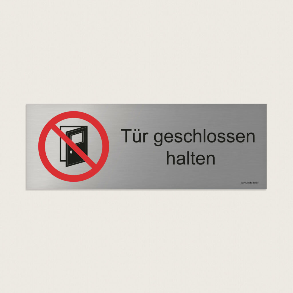 Hinweisschild Tür geschlossen halten. Ein hinweisschild ist eine einfache, aber äußerst wirkungsvolle Lösung, um Klarheit, Struktur und Sicherheit an Orten zu schaffen, an denen sich viele Menschen aufhalten. Diese Schilder erleichtern die Orientierung für Besucher, Mitarbeitende und temporär Beschäftigte und kommunizieren gleichzeitig deutlich geltende Verhaltensregeln, Vorschriften oder Verbote.