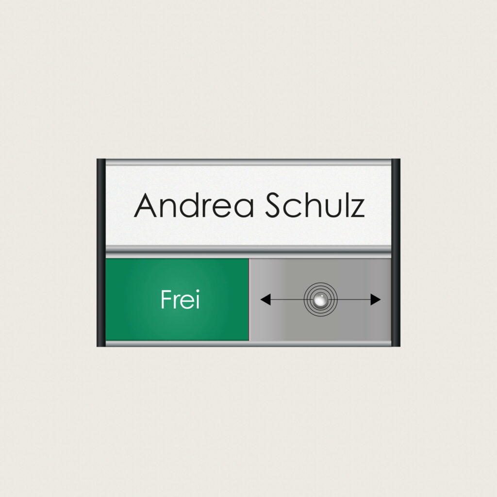 Türschild Büro mit Namen und Funktion Frei/Besetzt. Ein perfektes Schild vor einem Konferenz- oder Besprechungsraum oder im eigenen Büro.
