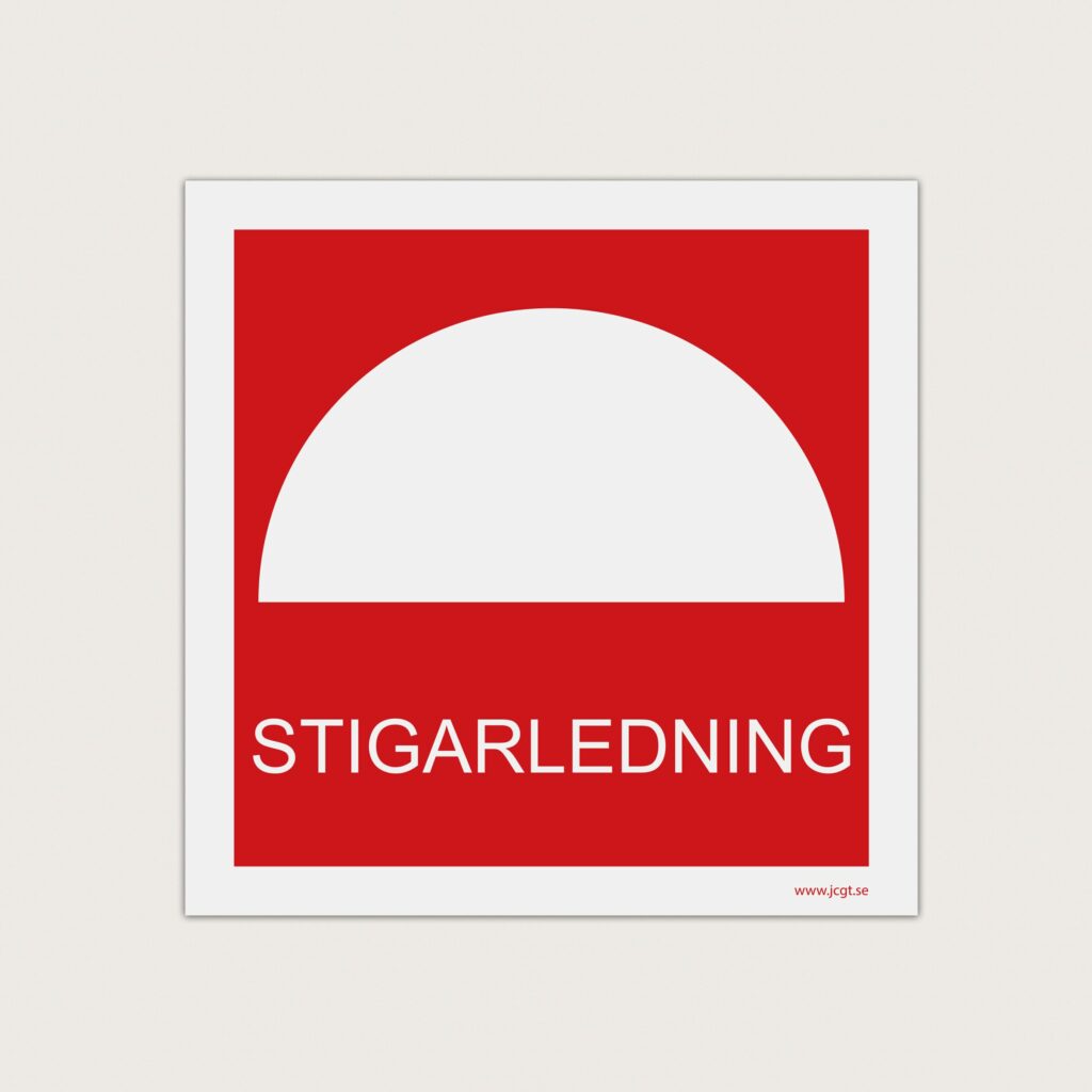 En brandskylt för stigarledning i olika material och färgegenskaper.