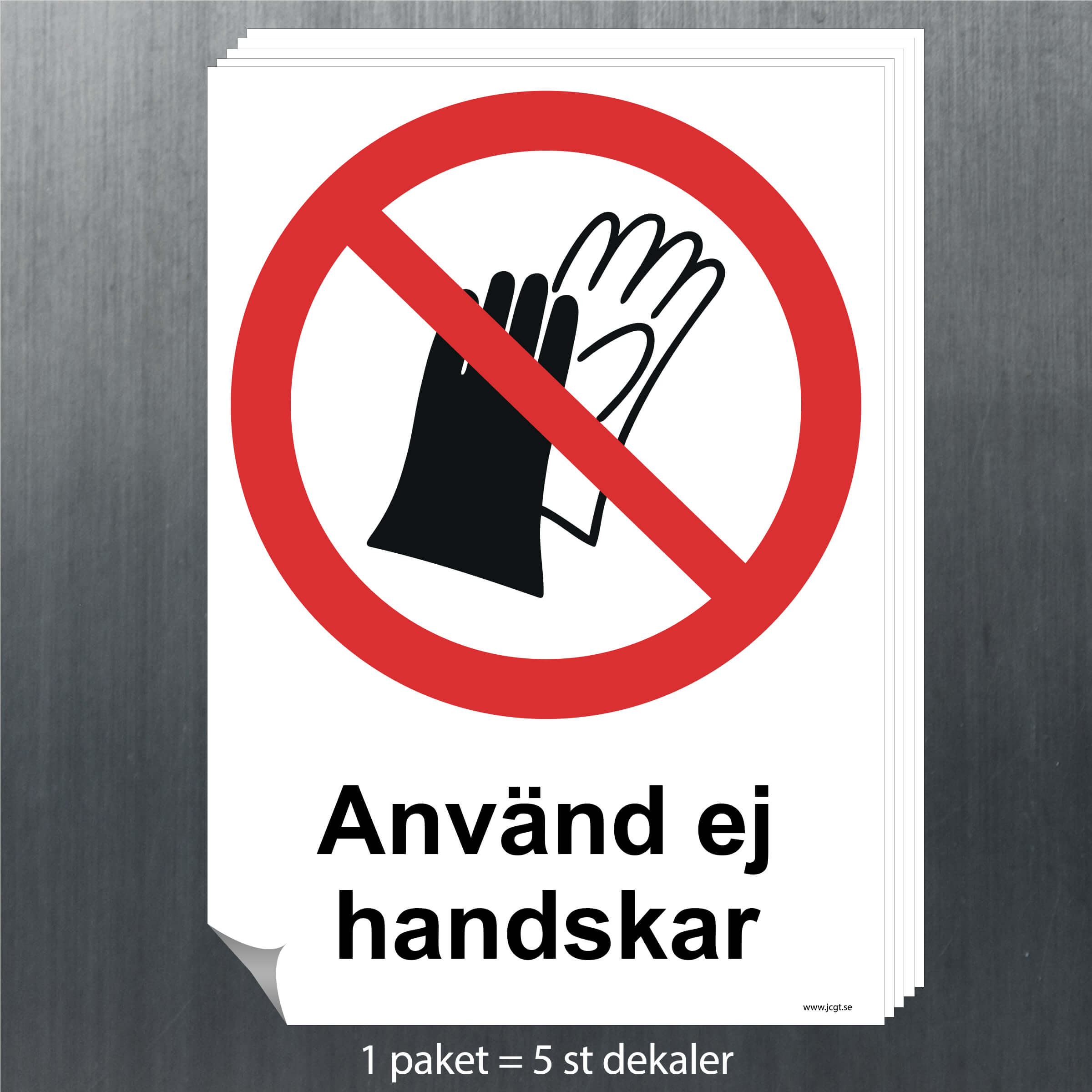 Förbudsskylt Använd ej handskar att sätta vid arbetsplatsen. Välj mellan olika storlekar och material som aluminium eller klisterdekal.