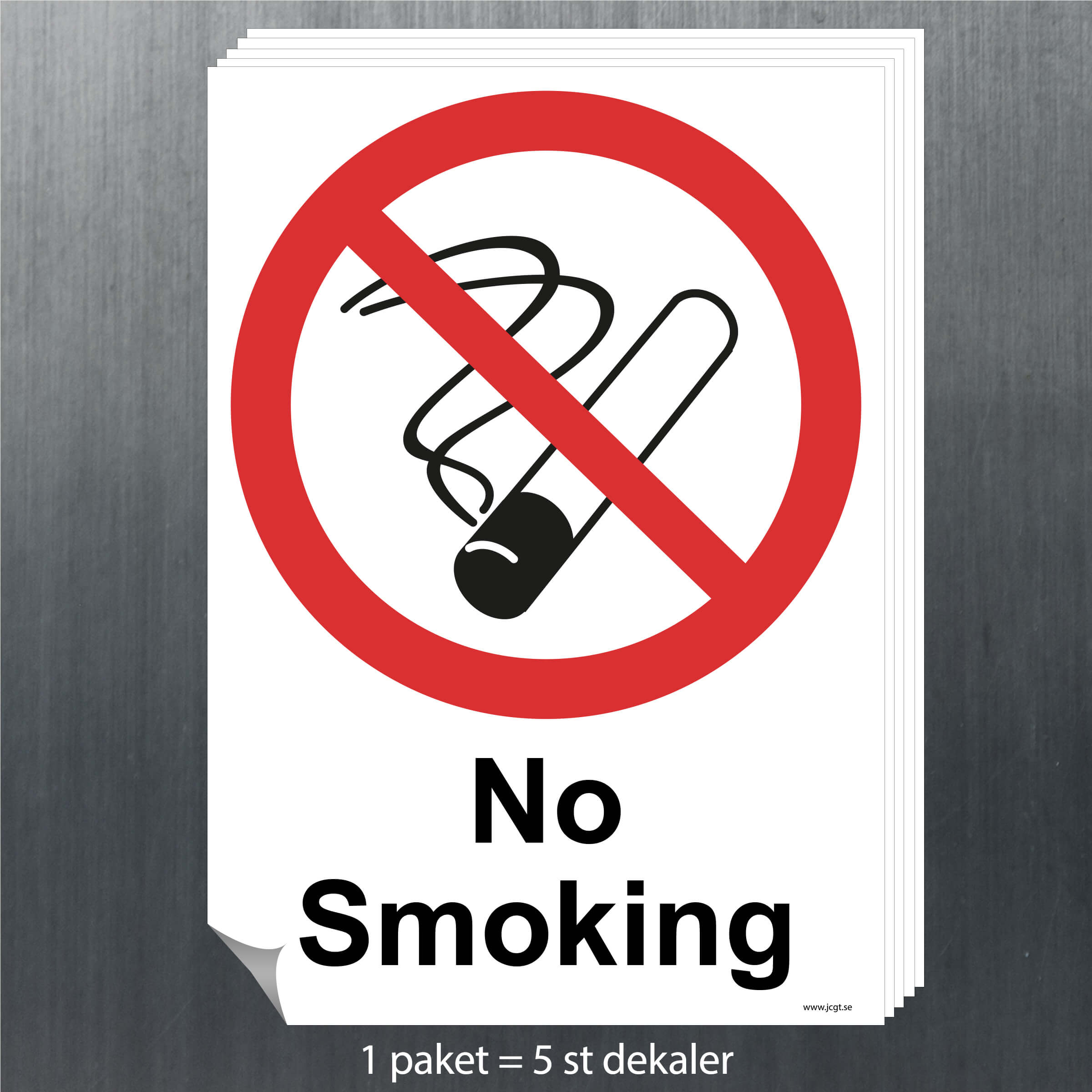 Förbudsskylt No smoking att sätta vid offentliga miljöer där det är förbjudet att röka