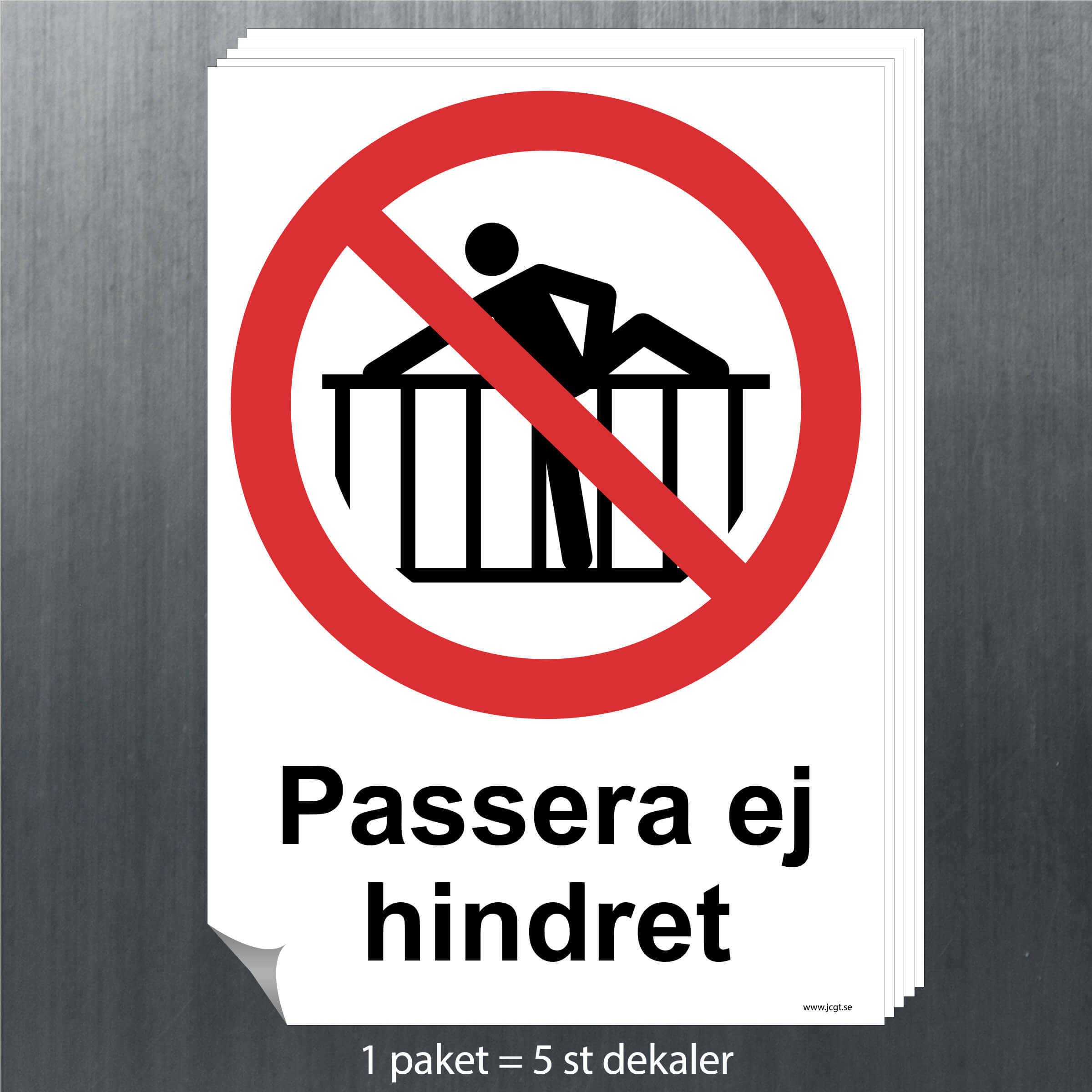Förbudsskylt Passera ej hindret att sätta vid arbetsplatsen. Välj mellan olika storlekar och material som aluminium eller klisterdekal.