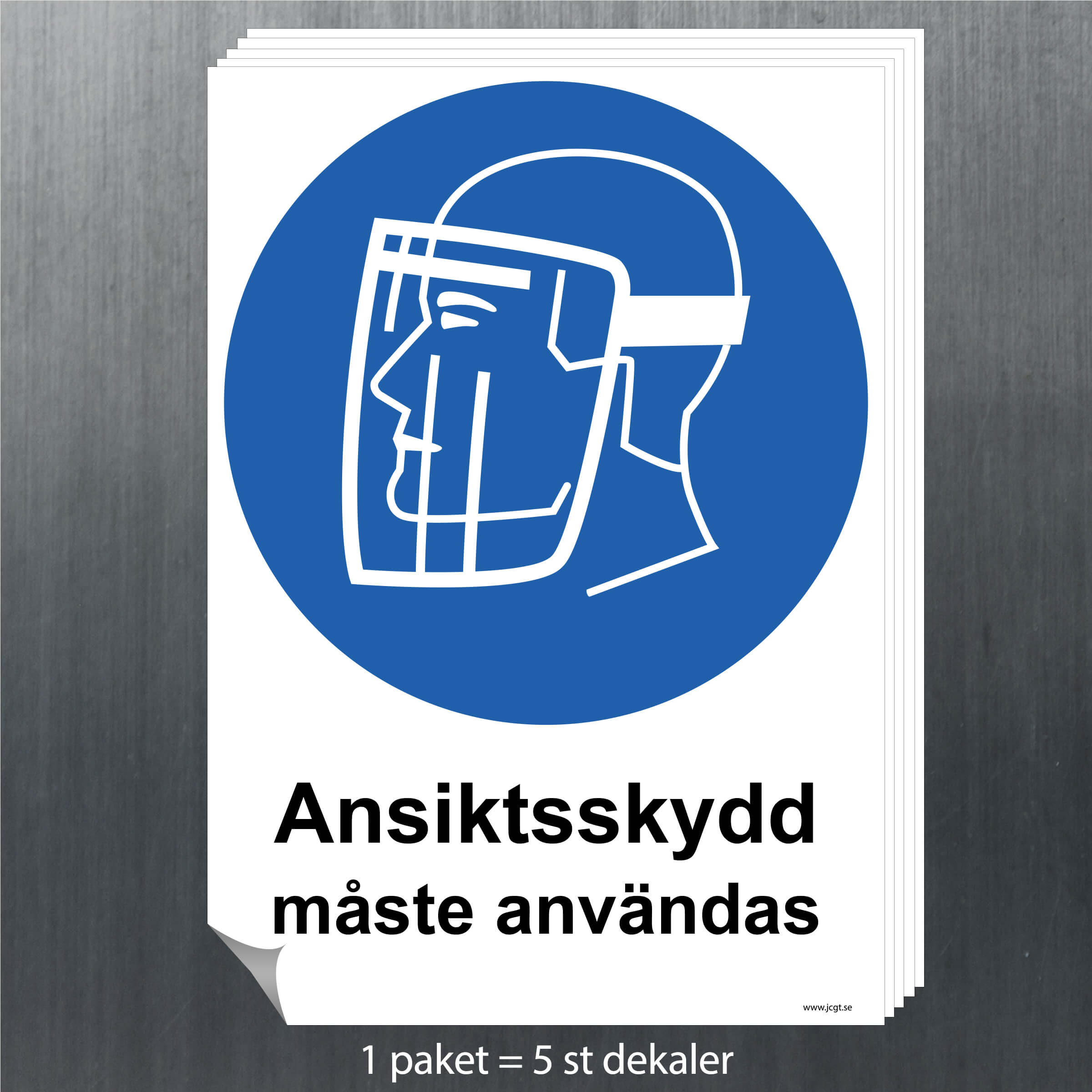 Påbudsskylt Ansiktsskydd som visar vilka krav på skyddsutrustning som finns på denna arbetsplats.