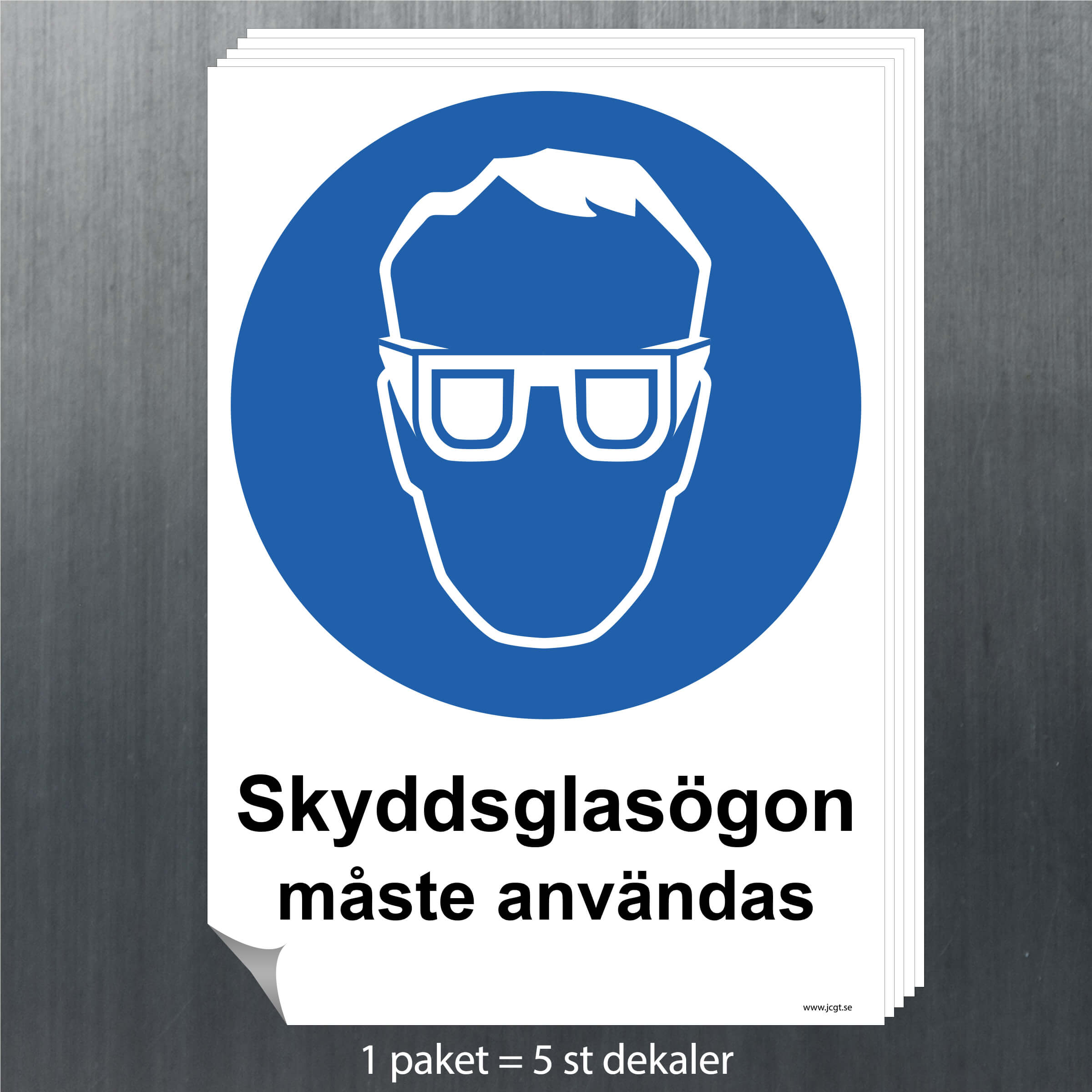 Påbudsskylt Skyddsglasögon som visar vilka krav på skyddsutrustning som finns på denna arbetsplats.