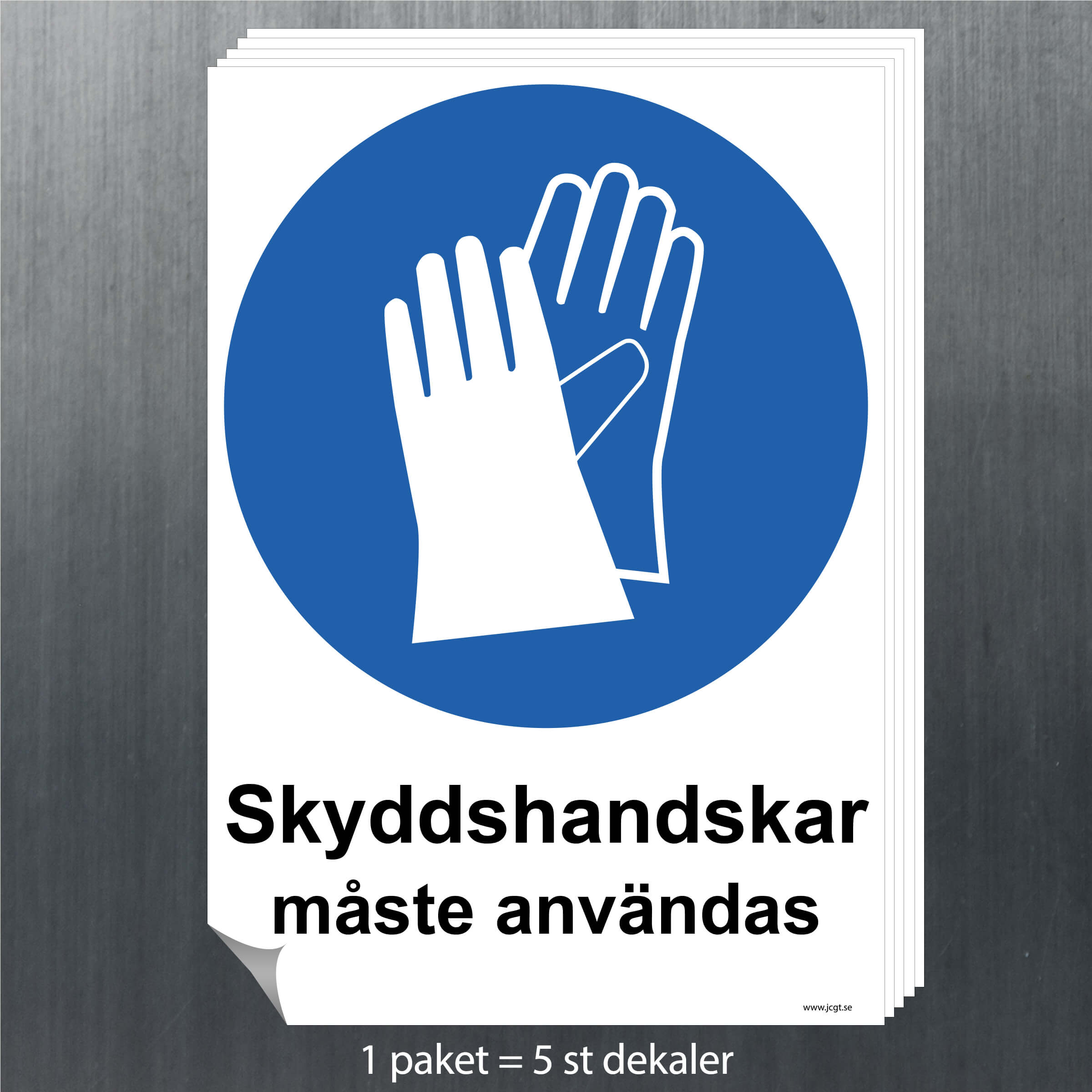 Påbudsskylt Skyddshandskar som visar vilka krav på skyddsutrustning som finns på denna arbetsplats.