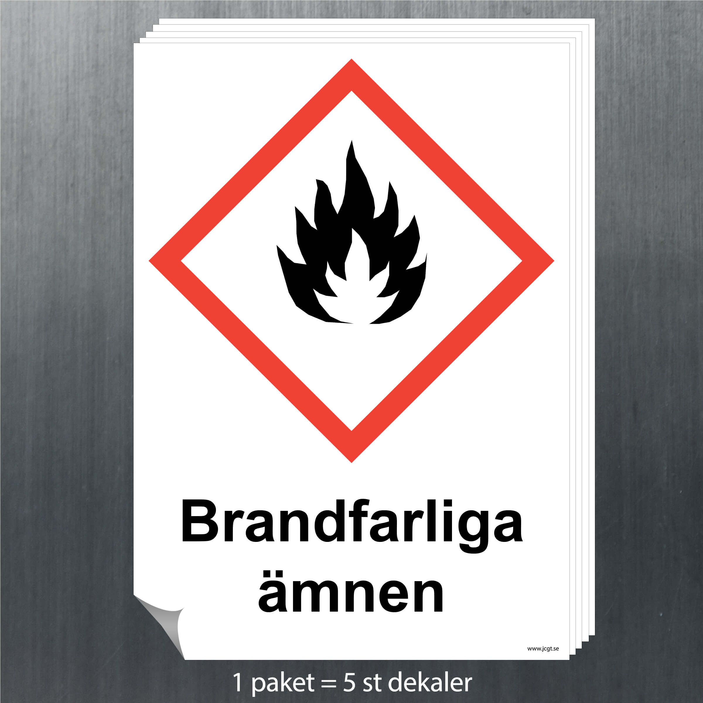 Varningsskylt Brandfarliga ämnen, som uppmärksammar de som befinner sig på platsen om risker som finns där.