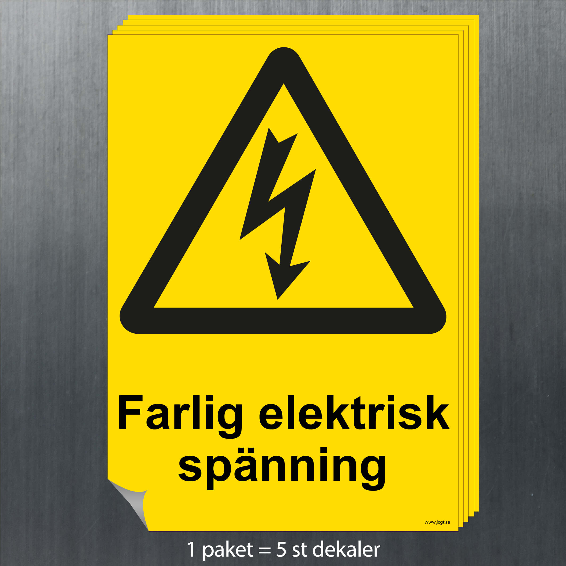 Varningsskylt Farlig elektrisk spänning, som uppmärksammar de som befinner sig på platsen om risker som finns där.