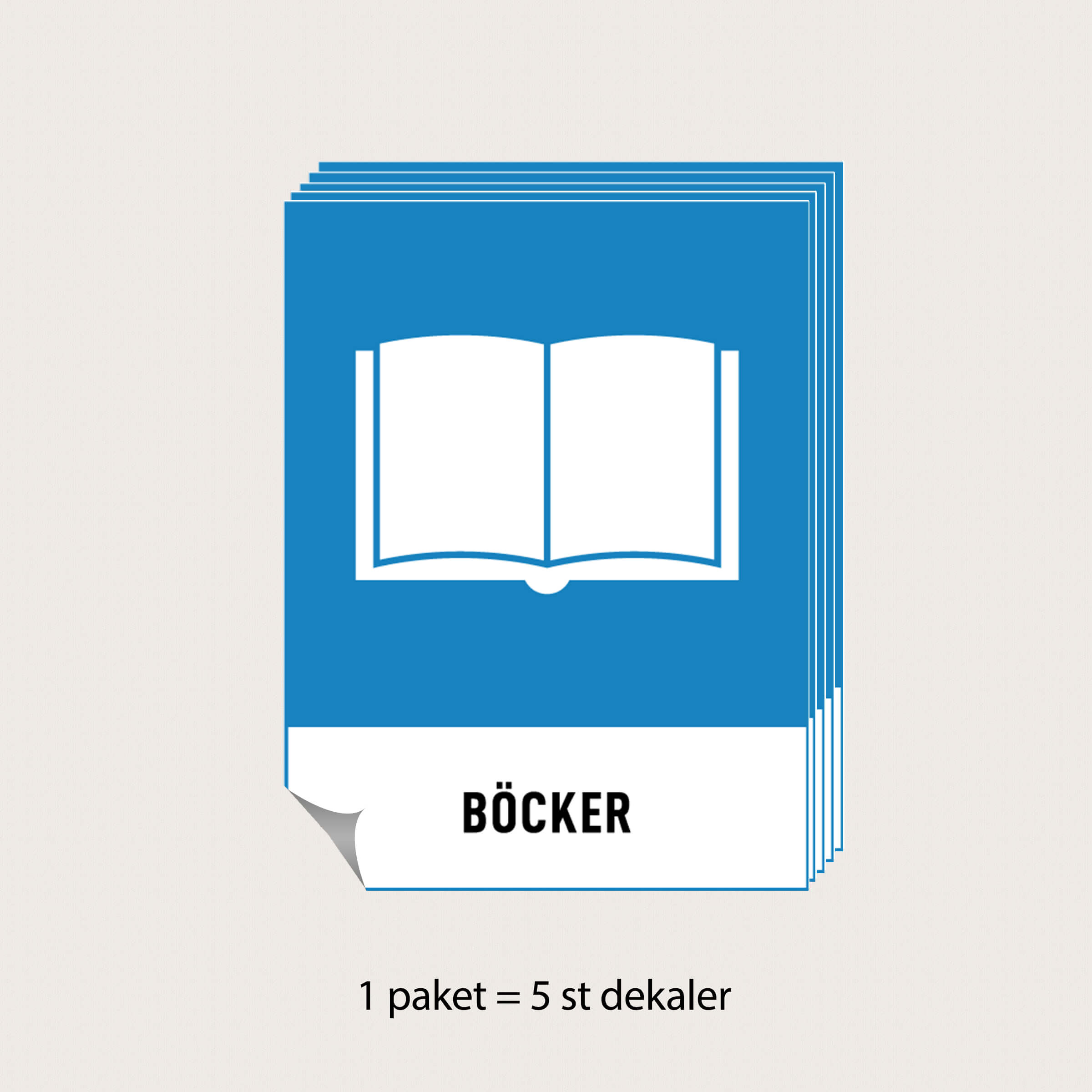 Återvinningsskylt Böcker i aluminium eller som dekal. Välj mellan tre olika storlekar.