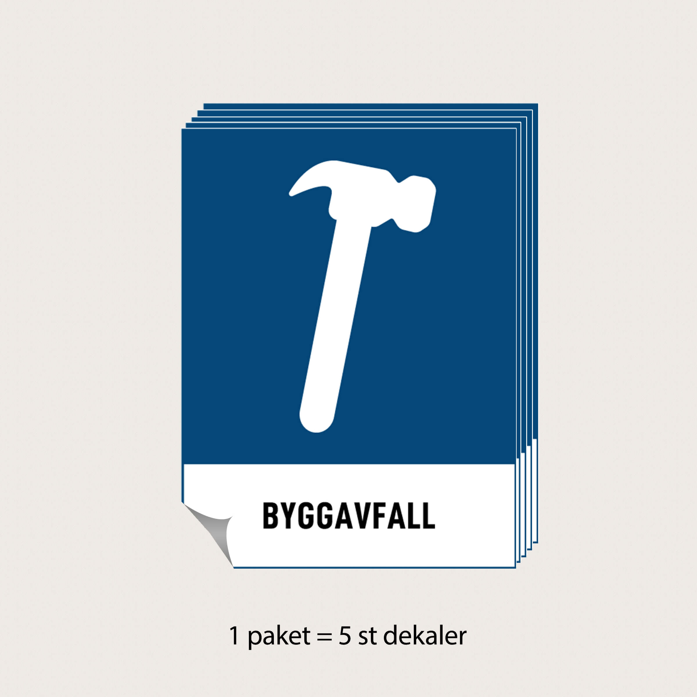 Återvinningsskylt Byggavfall i aluminium eller som dekal. Välj mellan tre olika storlekar.