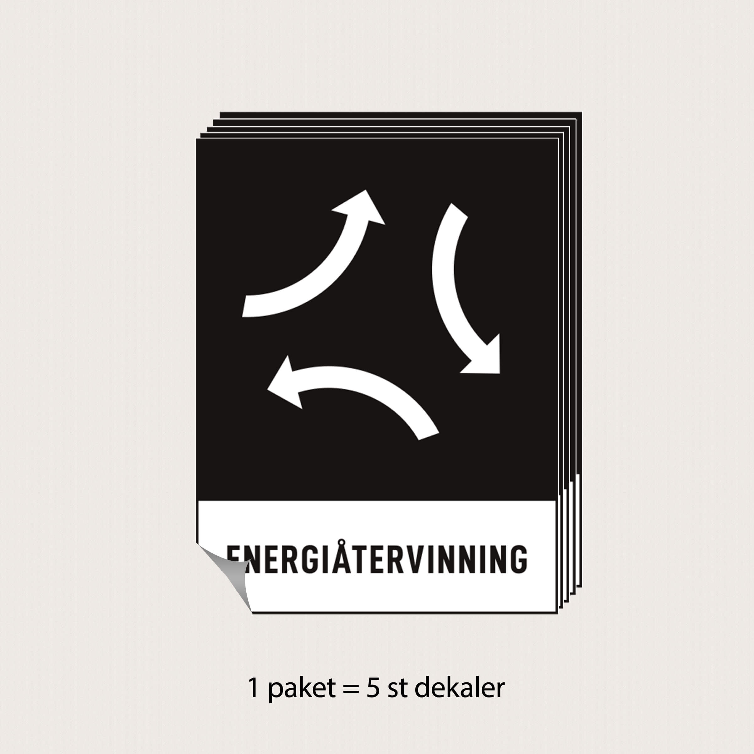 Återvinningsskylt Energiåtervinning i aluminium eller som dekal. Välj mellan tre olika storlekar.
