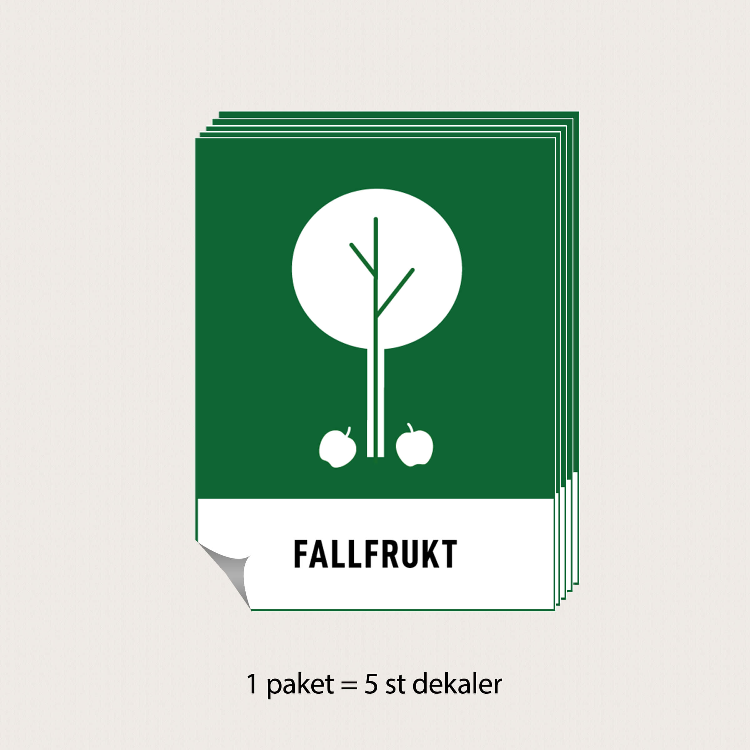 Återvinningsskylt Fallfrukt i aluminium eller som dekal. Välj mellan tre olika storlekar.