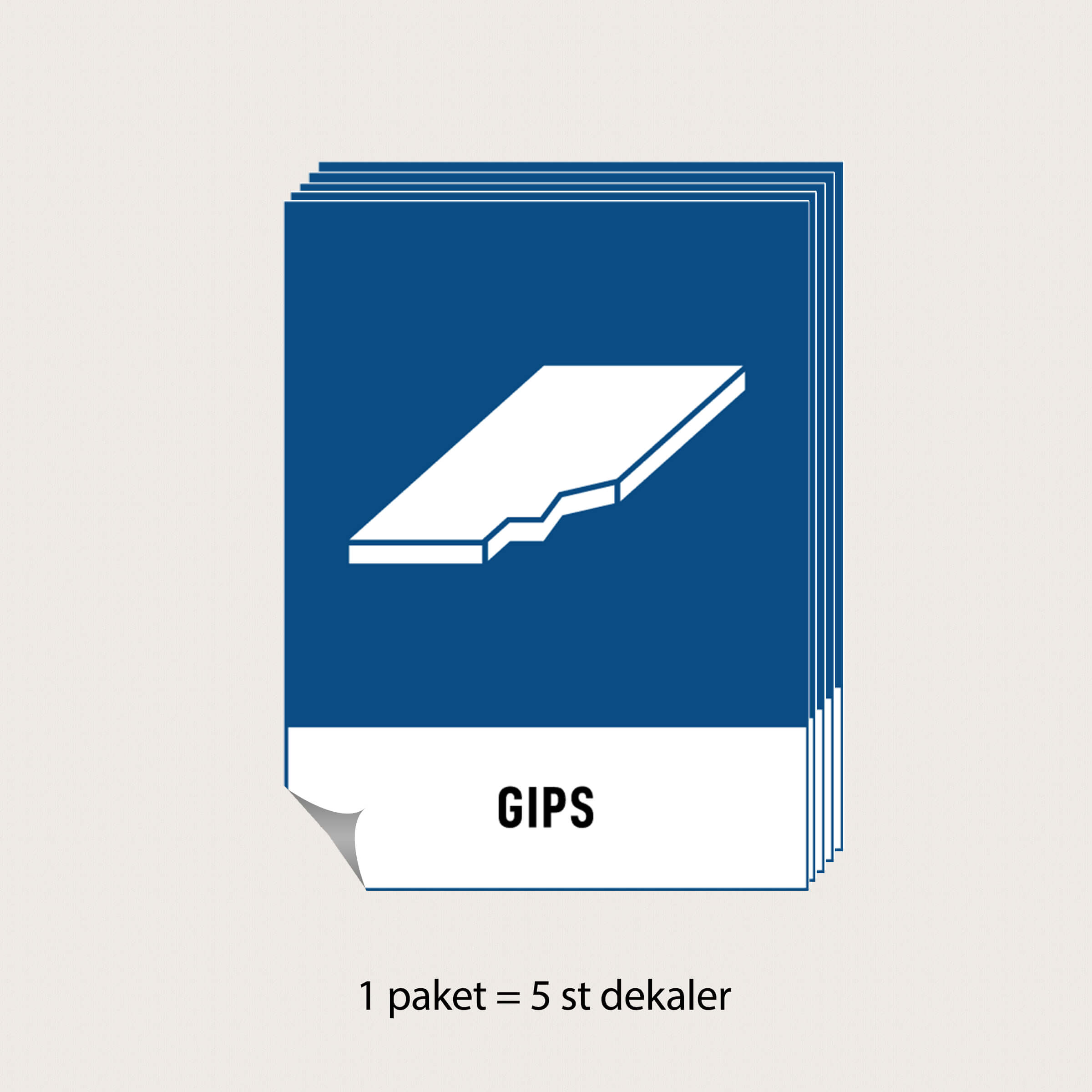 Återvinningsskylt Gips i aluminium eller som dekal. Välj mellan tre olika storlekar.