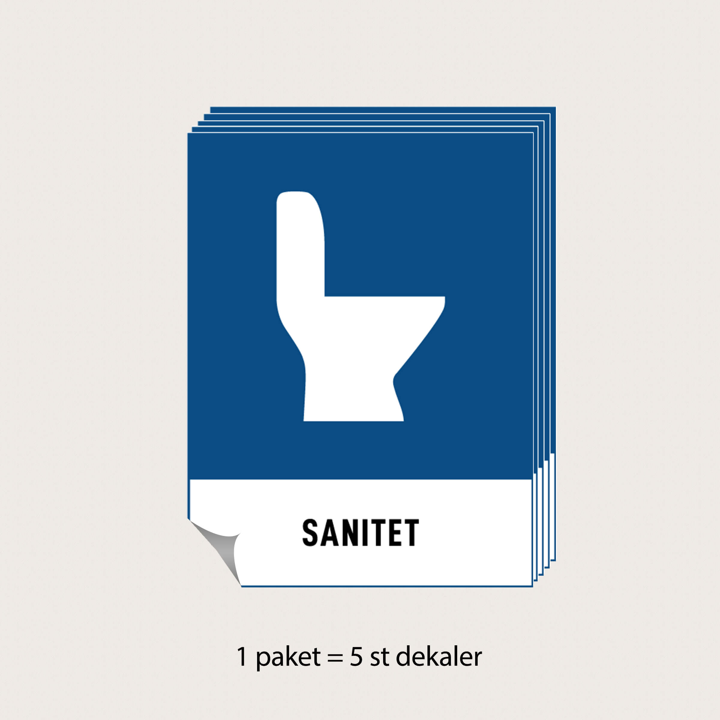 Återvinningsskylt Sanitet i aluminium eller som dekal. Välj mellan tre olika storlekar.