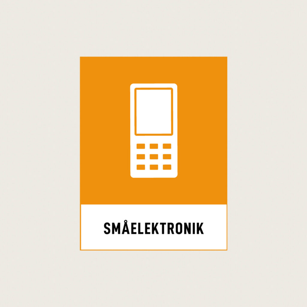 Återvinningsskylt Småelektronik i aluminium eller som dekal. Välj mellan tre olika storlekar.