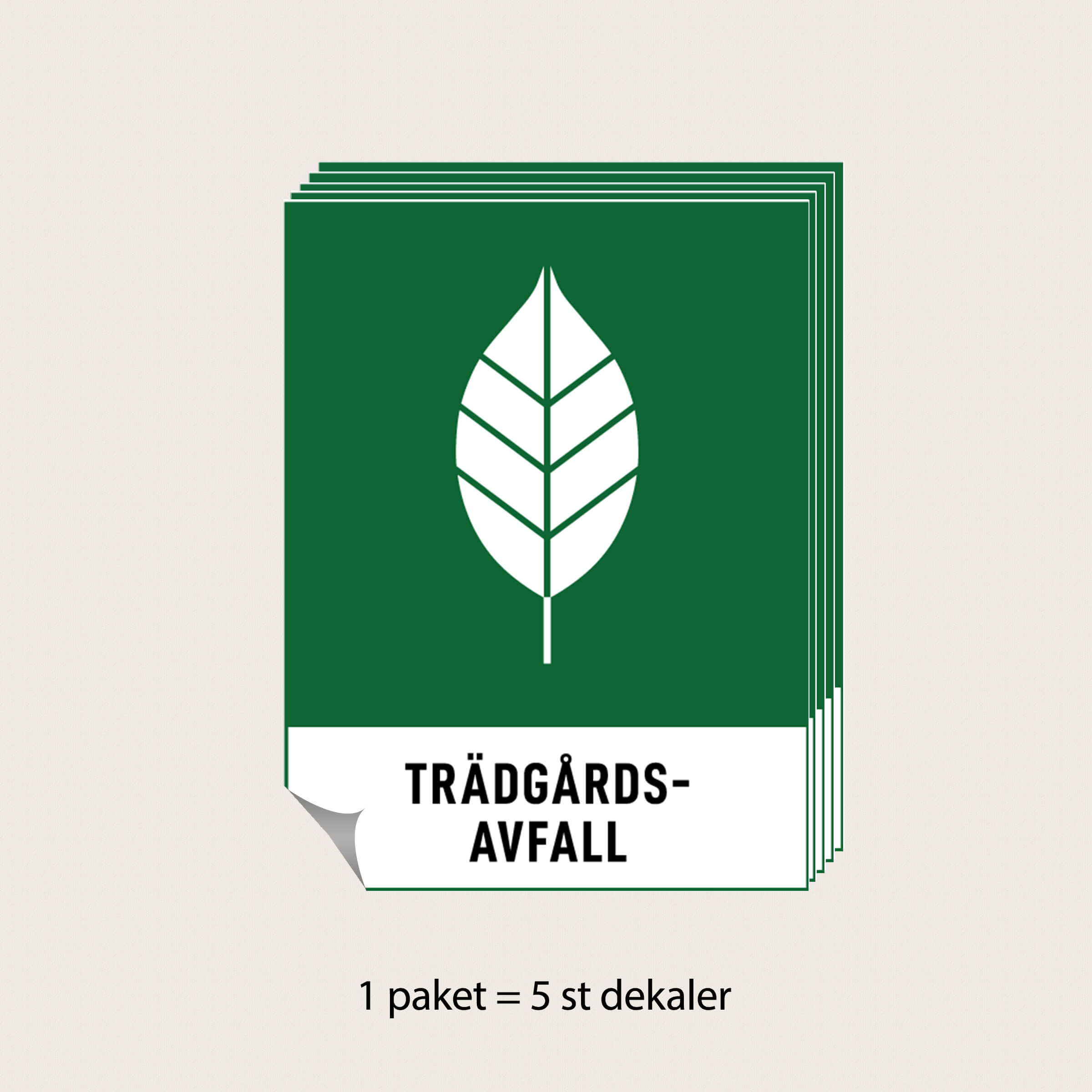 Återvinningsskylt Trädgårdsavfall i aluminium eller som dekal. Välj mellan tre olika storlekar.