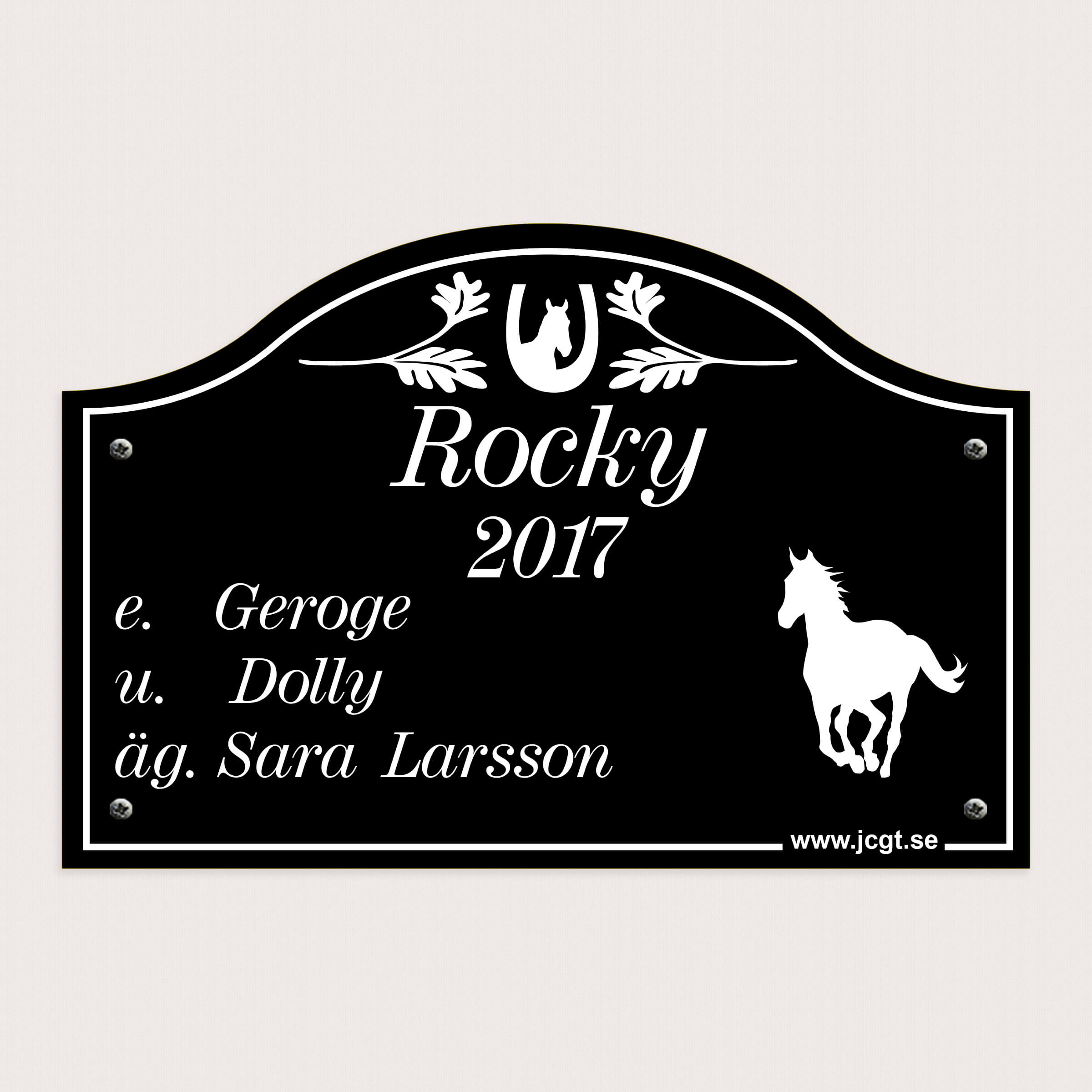 Storlek: 150 x 100 mm. Boxskylt Rocky i Aluminium, välj mellan olika symboler, färger och skriv in er text själva.