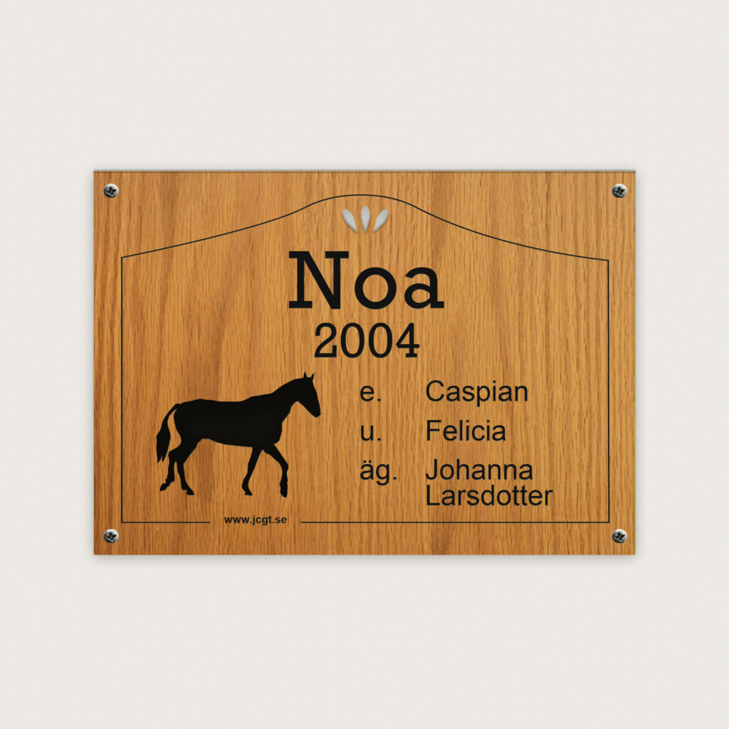 En elegant boxskylt med motivet av en Skrittande häst i Trä. Ett snyggt och elegant sätt att pryda hästens stallplats. De är enkla att rengöra och fungerar lika bra för inom- och utomhusbruk. Liknande produkt finns att välja om ni önskar en annan hästsymbol.