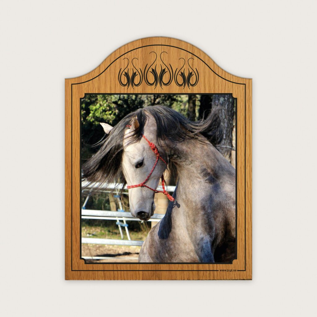 Skylt i trä där du själv laddar upp ett foto som trycks på trätavlan. Skylten lackeras och kan således användas utomhus.