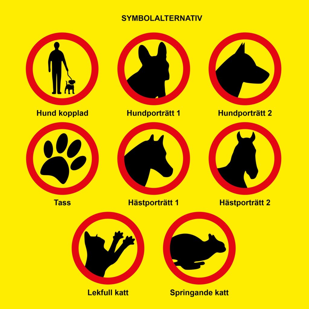 Här har du möjligheten att göra din egen unika varningsskylt genom att välja valfri symbol och text. Kanske din hund, som heter Putte, är en fara för brevbäraren? Nu kan du på ett snyggt och antingen komiskt eller allvarligt sätt upplysa eller varna besökare för ditt husdjur.