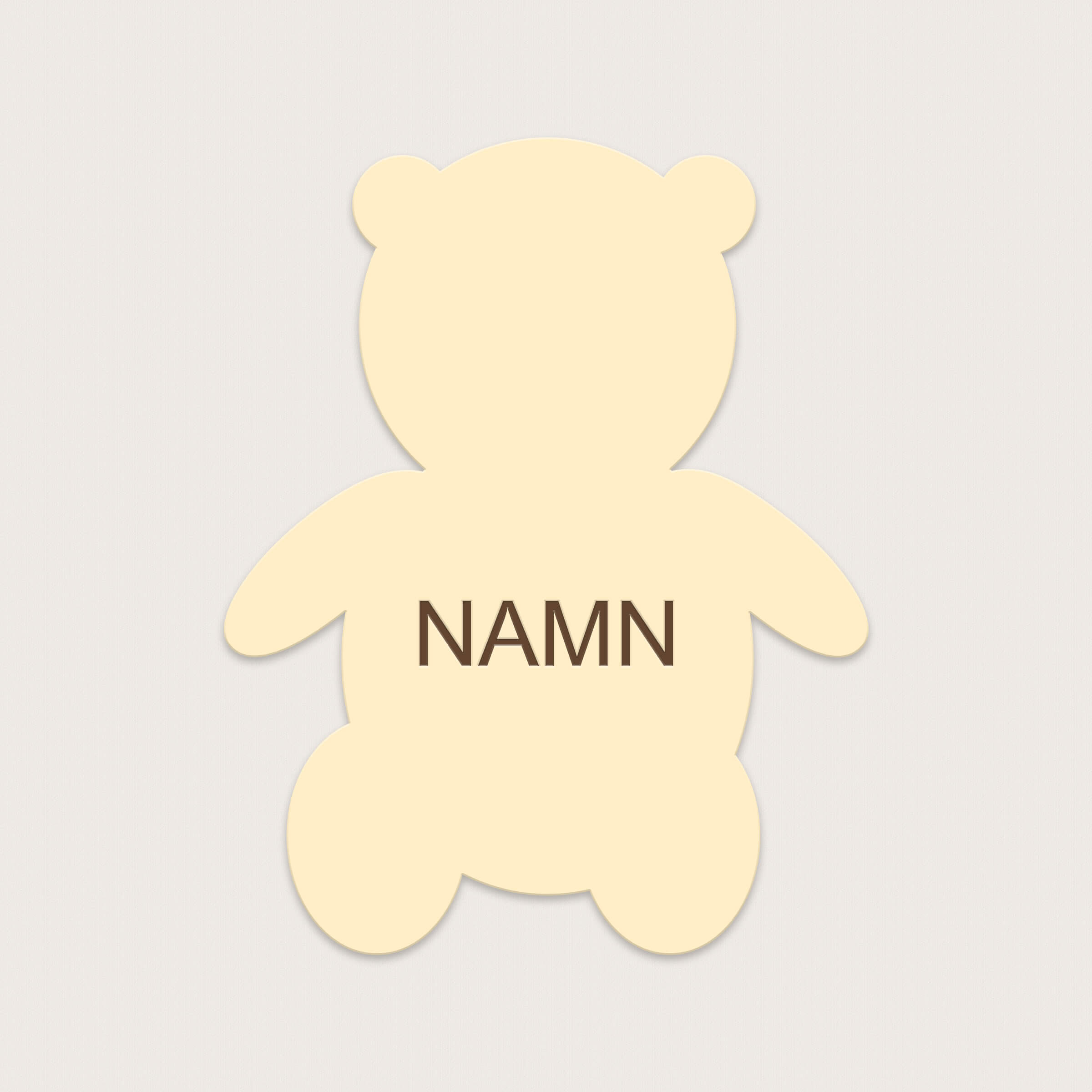 Dörrskylt Barnrum Teddy i graverbar plast, välj mellan olika färger och typsnitt.