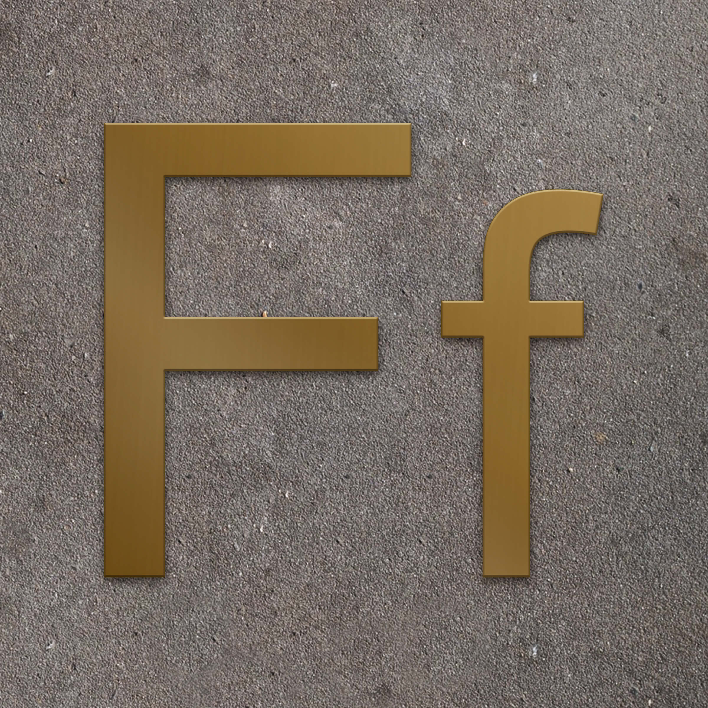 Fasadbokstav F i 2 mm mässing för inom- och utomhusbruk.