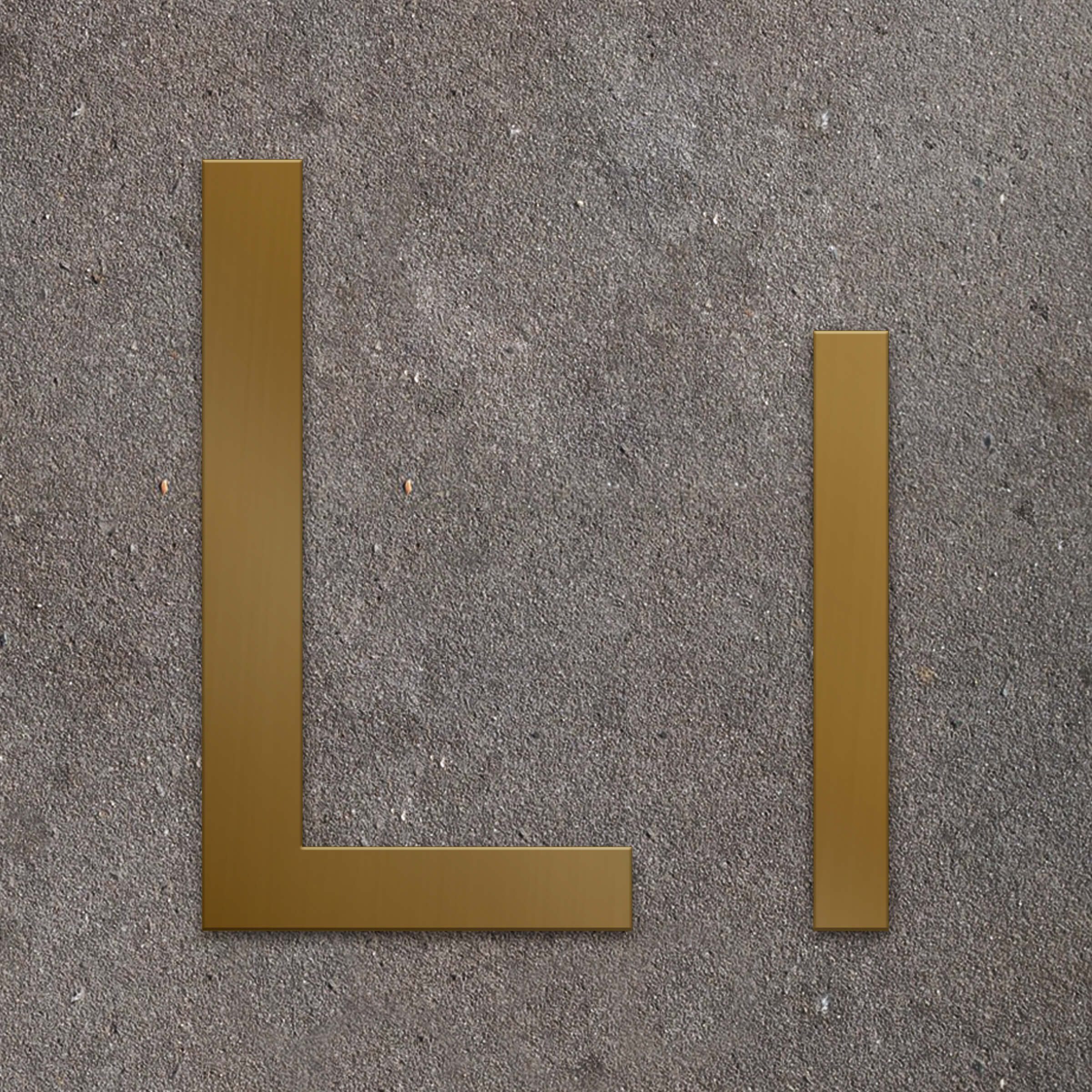 Fasadbokstav L i 2 mm mässing för inom- och utomhusbruk.