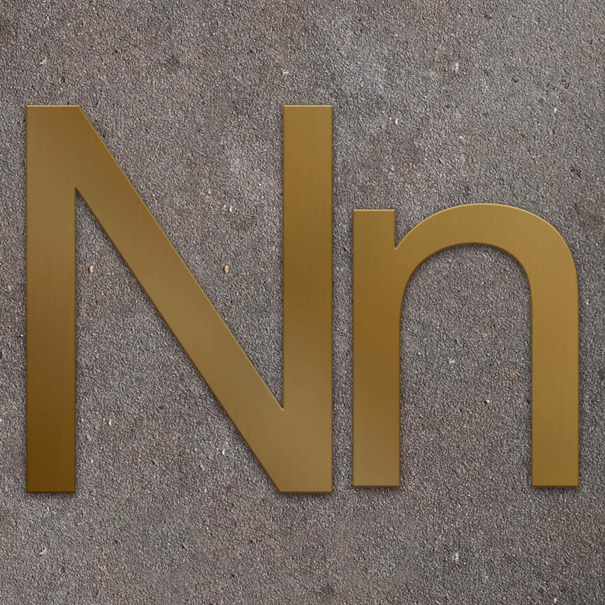 Fasadbokstav N i 2 mm mässing för inom- och utomhusbruk.