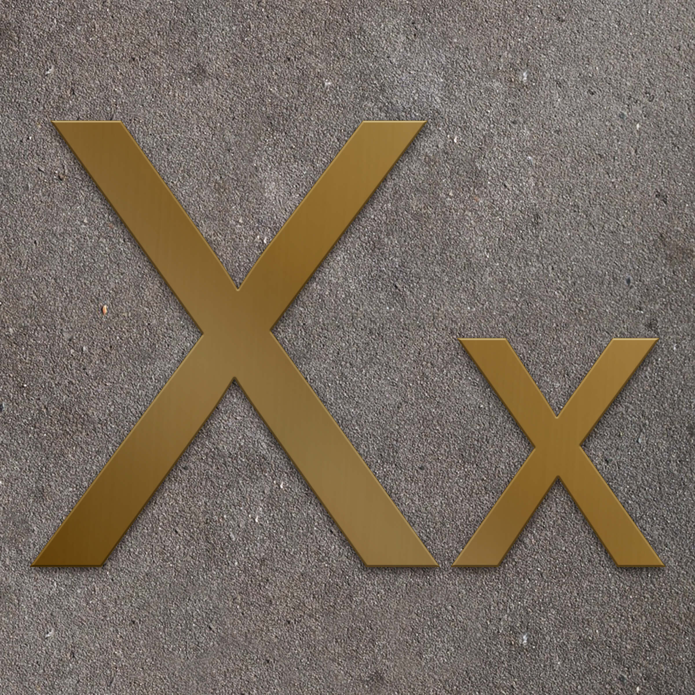Fasadbokstav X i 2 mm mässing för inom- och utomhusbruk.