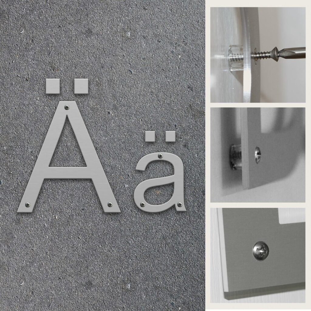 Fasadbokstav Ä i 3 mm aluminium för inom- och utomhusbruk.