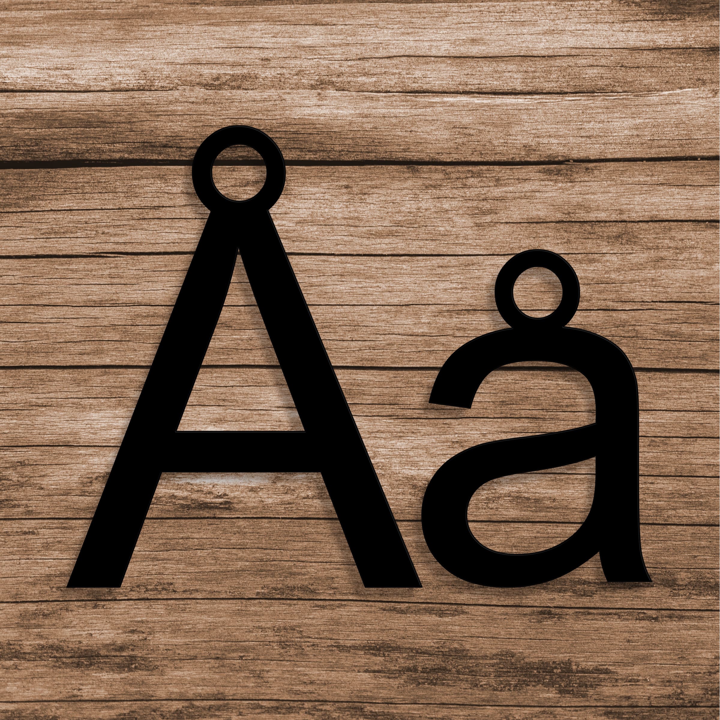 Fasadbokstav Å i antingen svart eller vit plexiglas som monteras med dolda distanser.