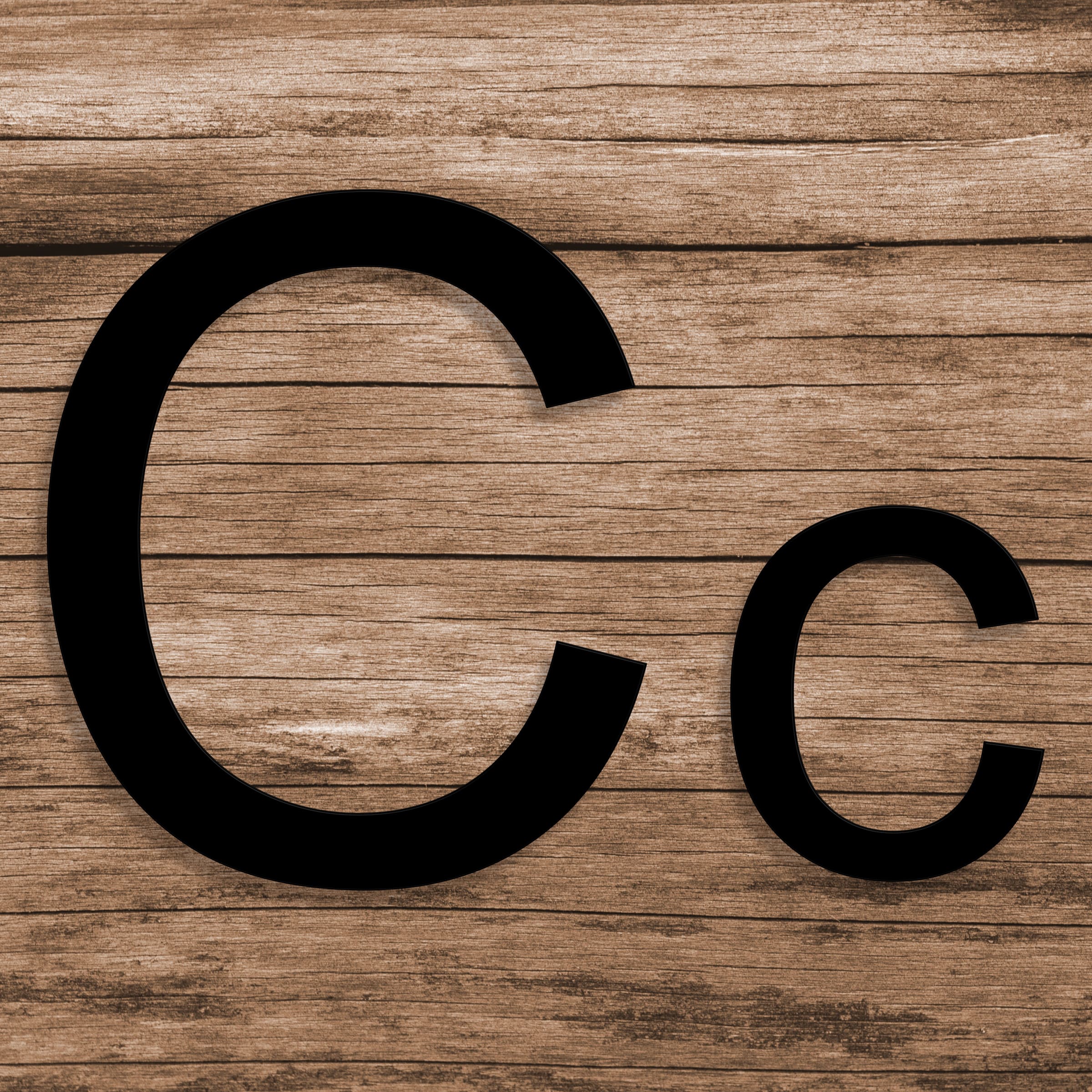 Fasadbokstav C i antingen svart eller vit plexiglas som monteras med dolda distanser.
