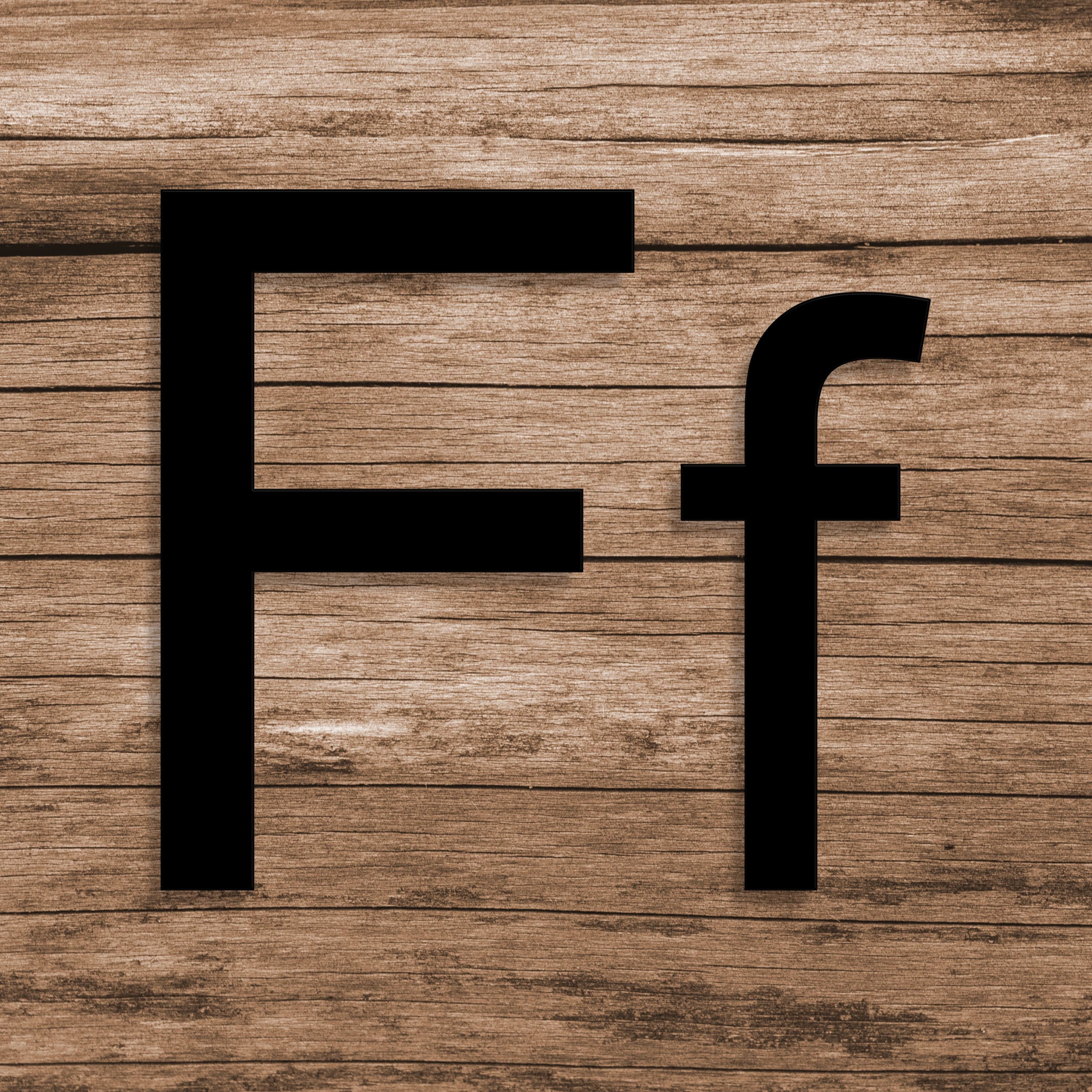 Fasadbokstav F i antingen svart eller vit plexiglas som monteras med dolda distanser.