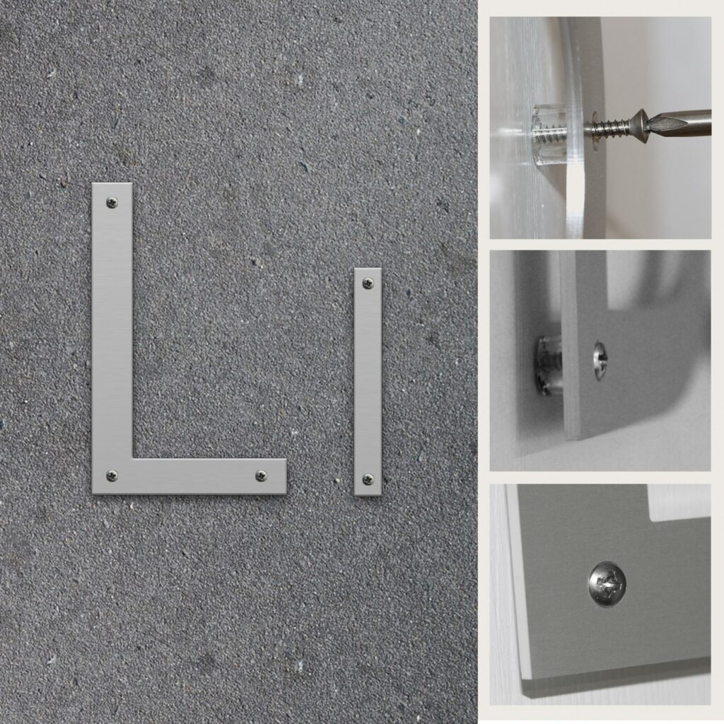 Fasadbokstav L i 3 mm aluminium för inom- och utomhusbruk.