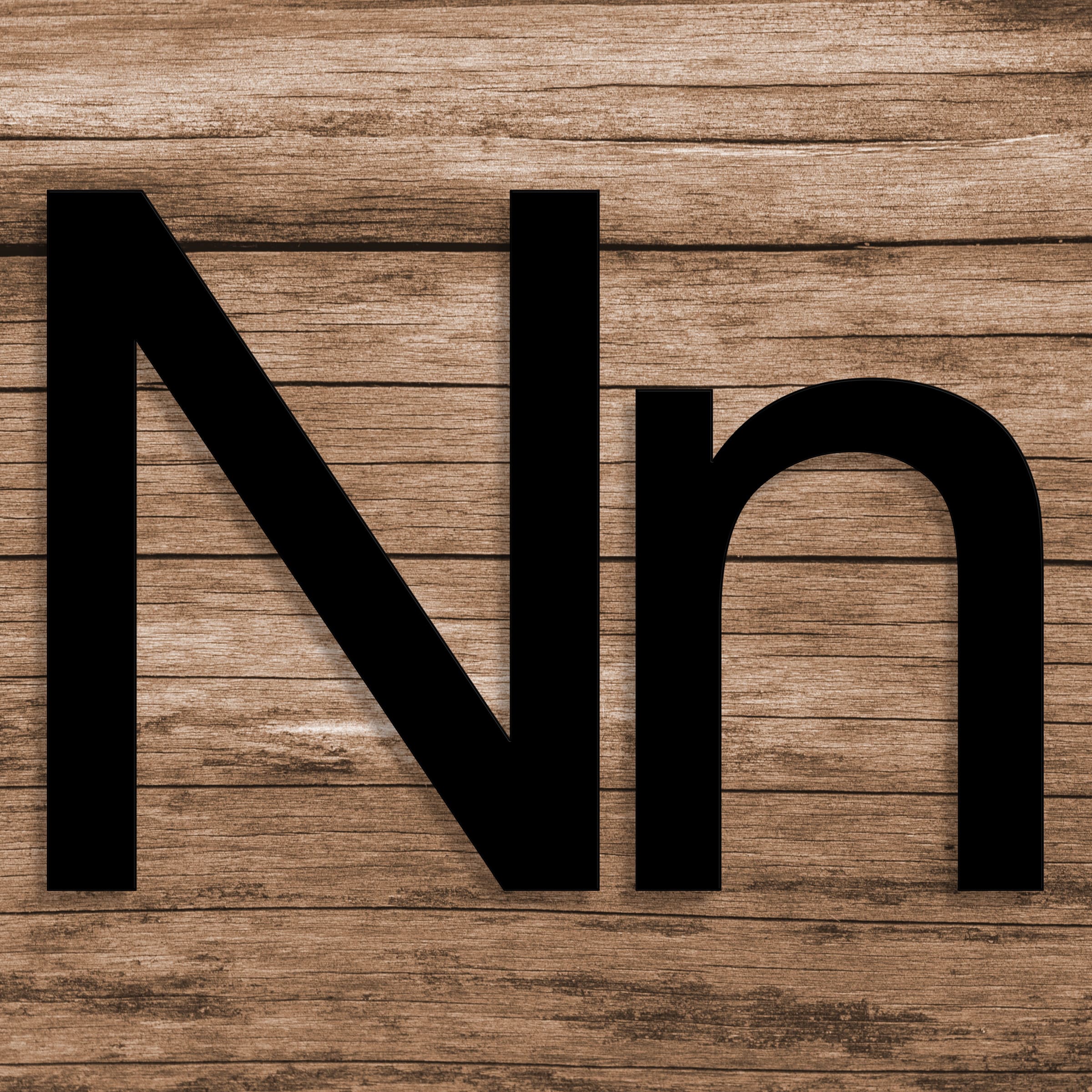 Fasadbokstav N i antingen svart eller vit plexiglas som monteras med dolda distanser.