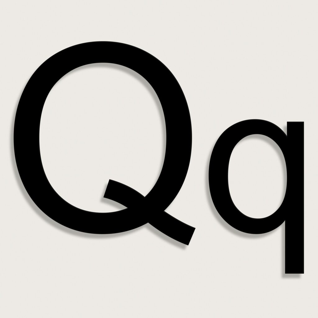 Fasadbokstav Q i antingen svart eller vit plexiglas som monteras med dolda distanser.