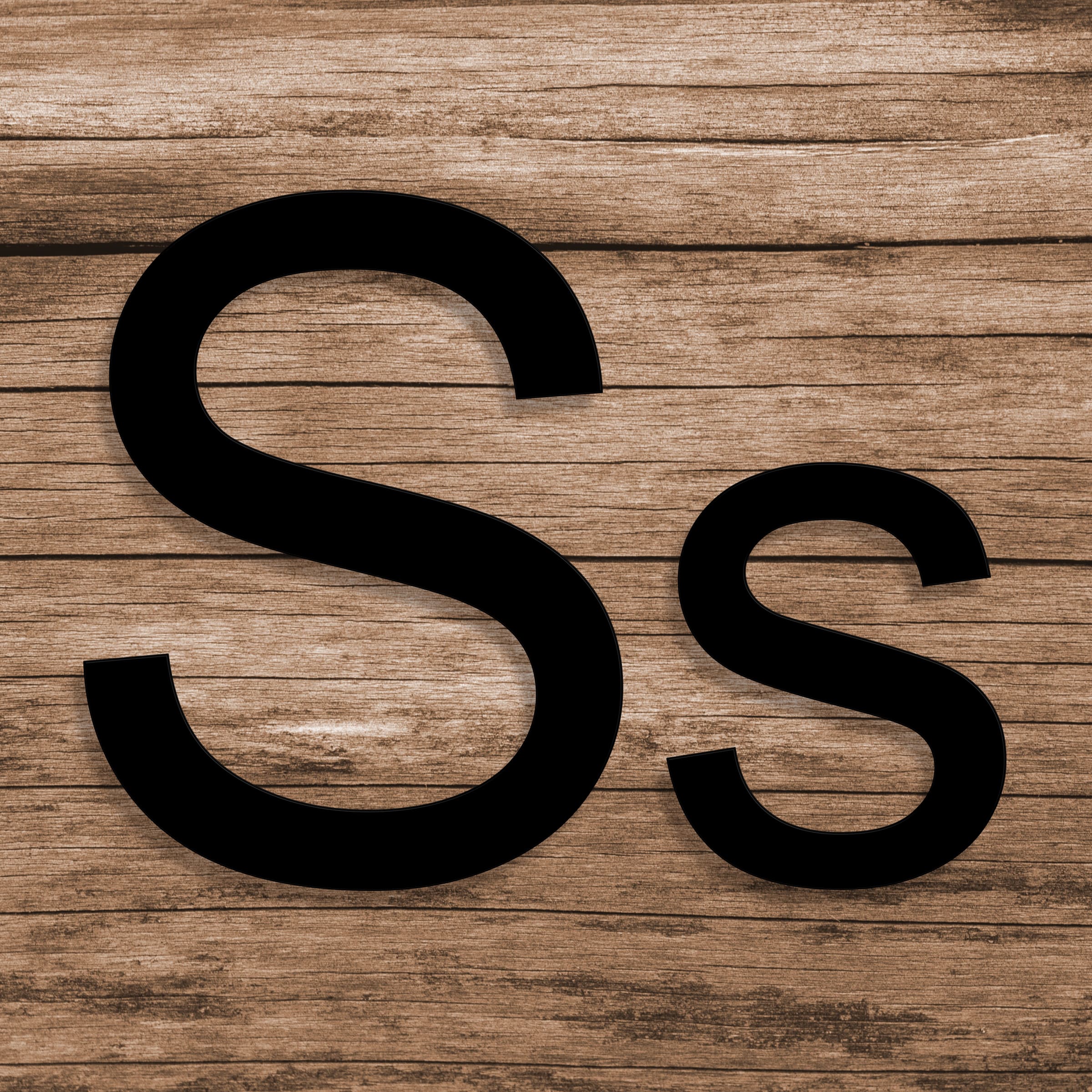 Fasadbokstav S i antingen svart eller vit plexiglas som monteras med dolda distanser.