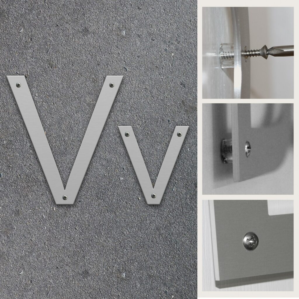 Fasadbokstav V i 3 mm aluminium för inom- och utomhusbruk.