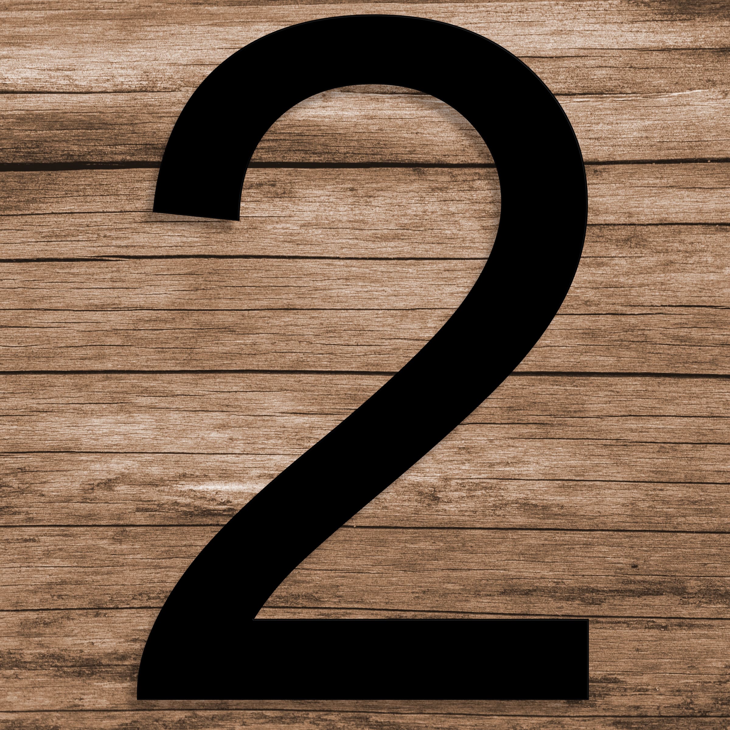 Fasadsiffra 2 i antingen svart eller vit plexiglas som monteras med dolda distanser.