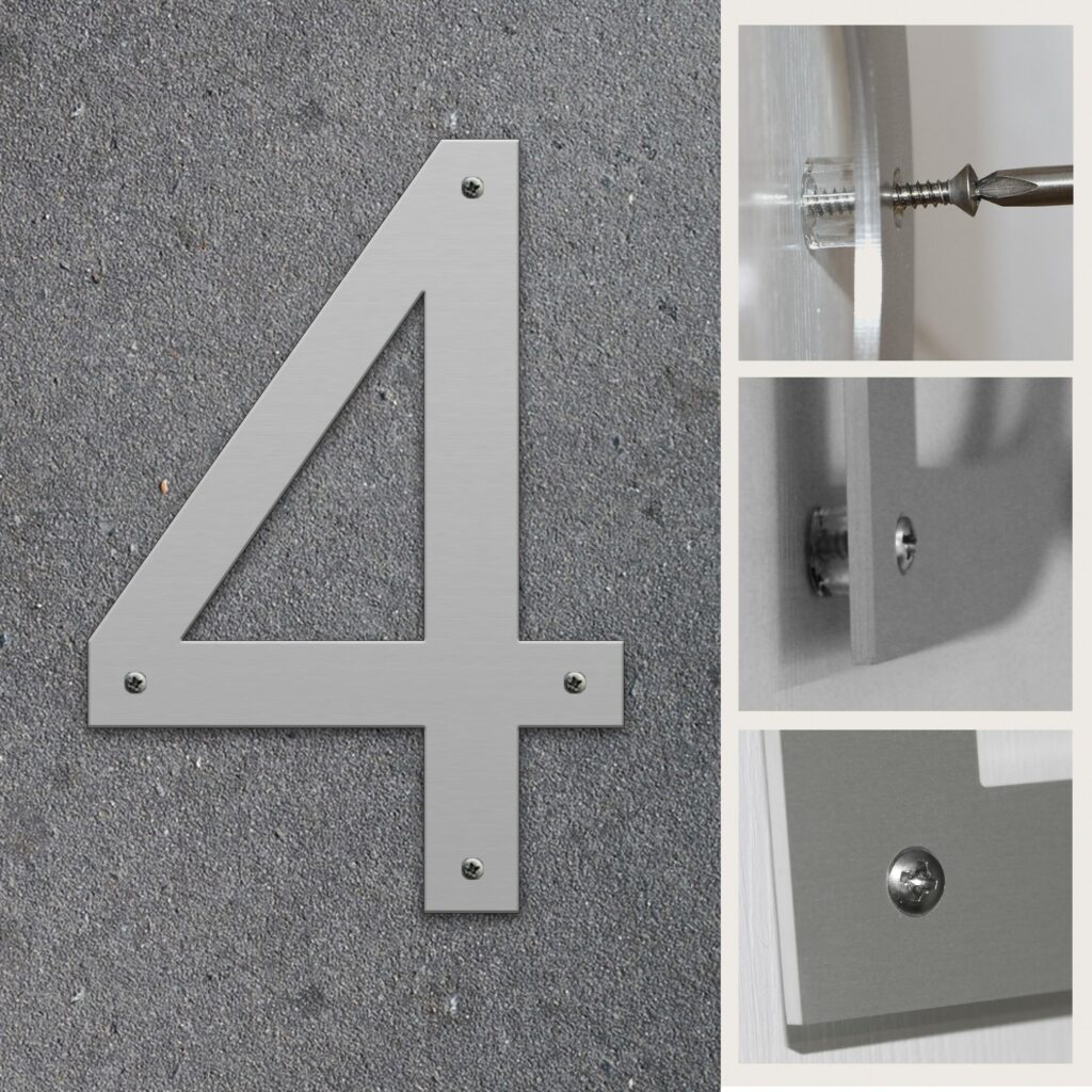 Fasadsiffra 4 i aluminium för inom- och utomhusbruk.