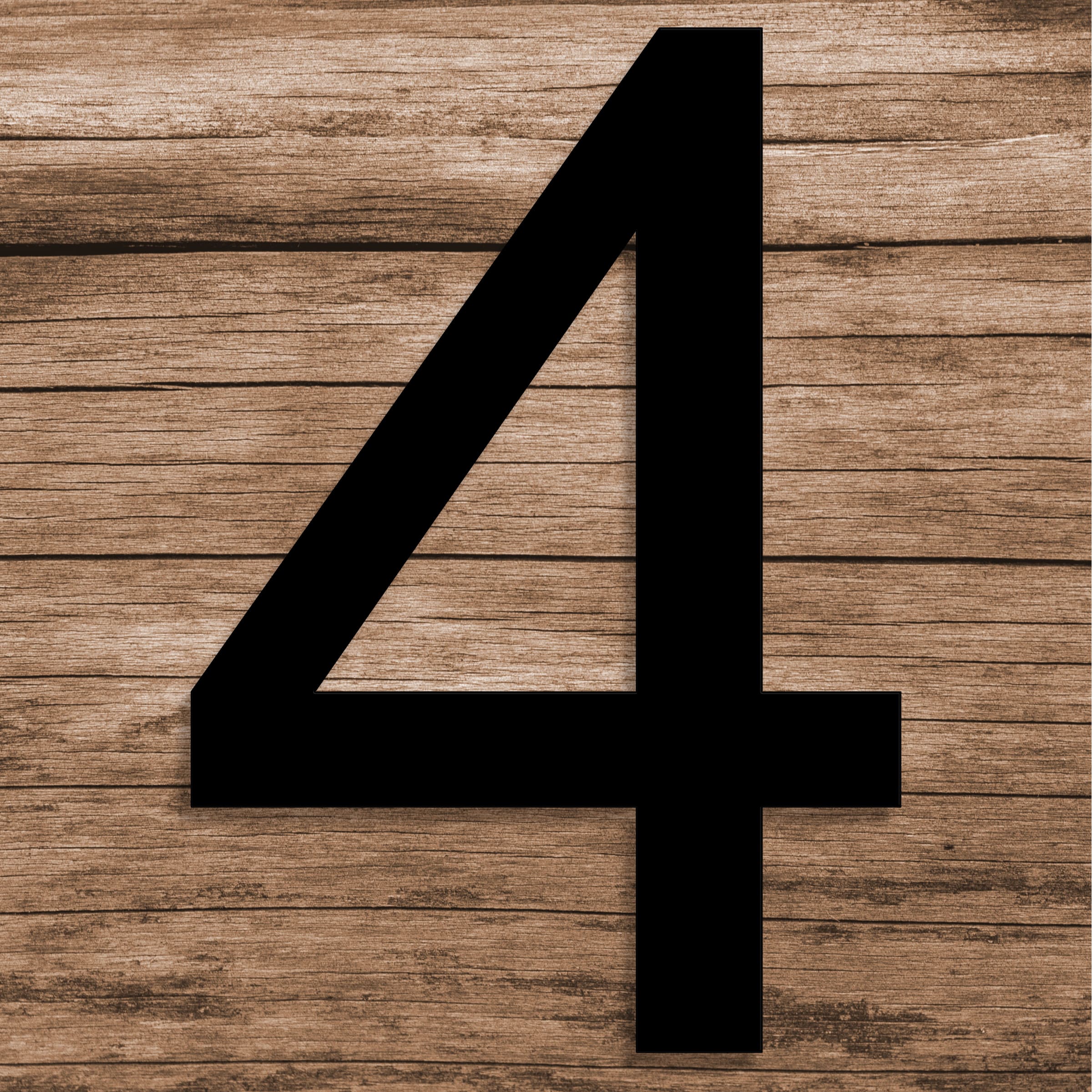 Fasadsiffra 4 i antingen svart eller vit plexiglas som monteras med dolda distanser.