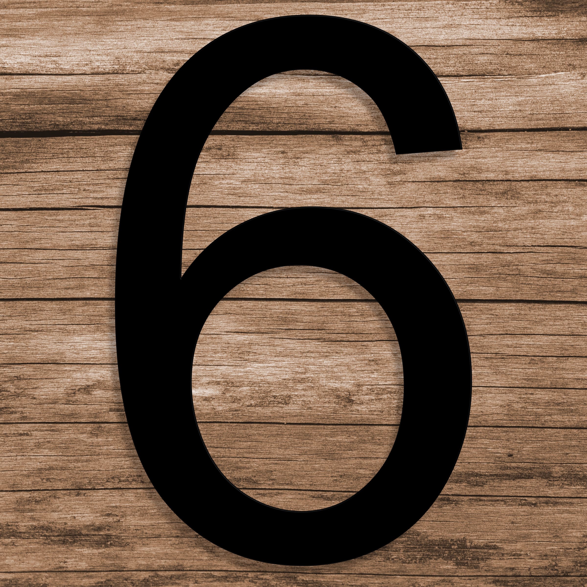 Fasadsiffra 6 i antingen svart eller vit plexiglas som monteras med dolda distanser.