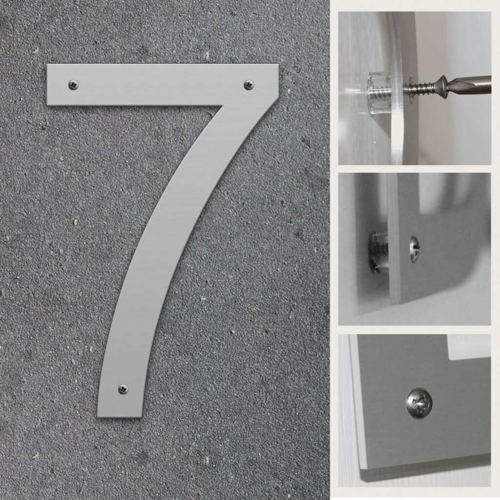 Fasadsiffra 7 i aluminium för inom- och utomhusbruk.