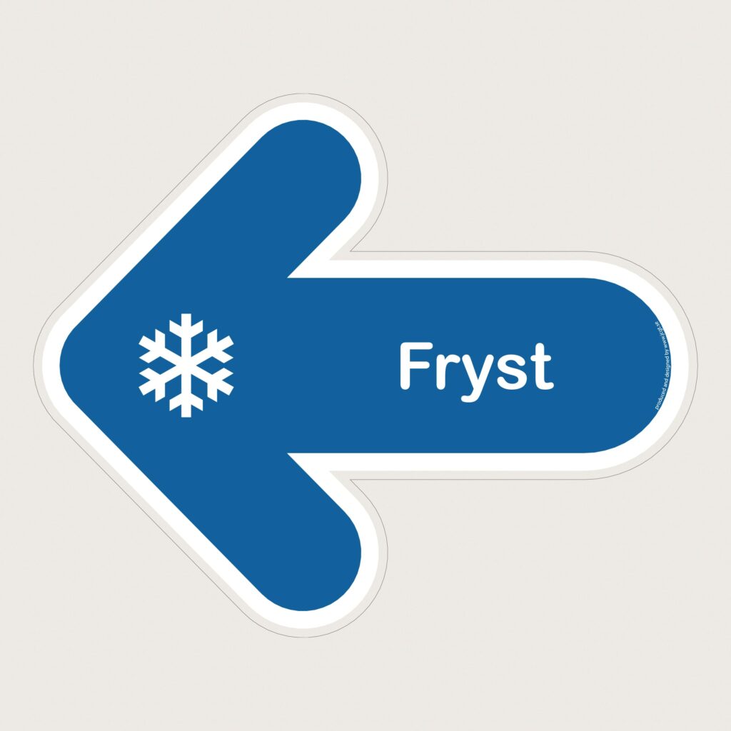 En golvpil med text och symbol för Fryst. Pekar era kunder rätt.
