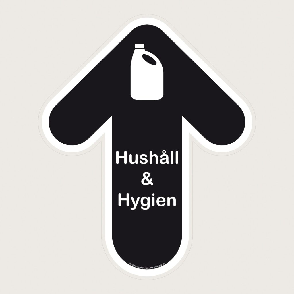 En golvpil med text och symbol för Hushåll & Hygien. Pekar era kunder rätt.